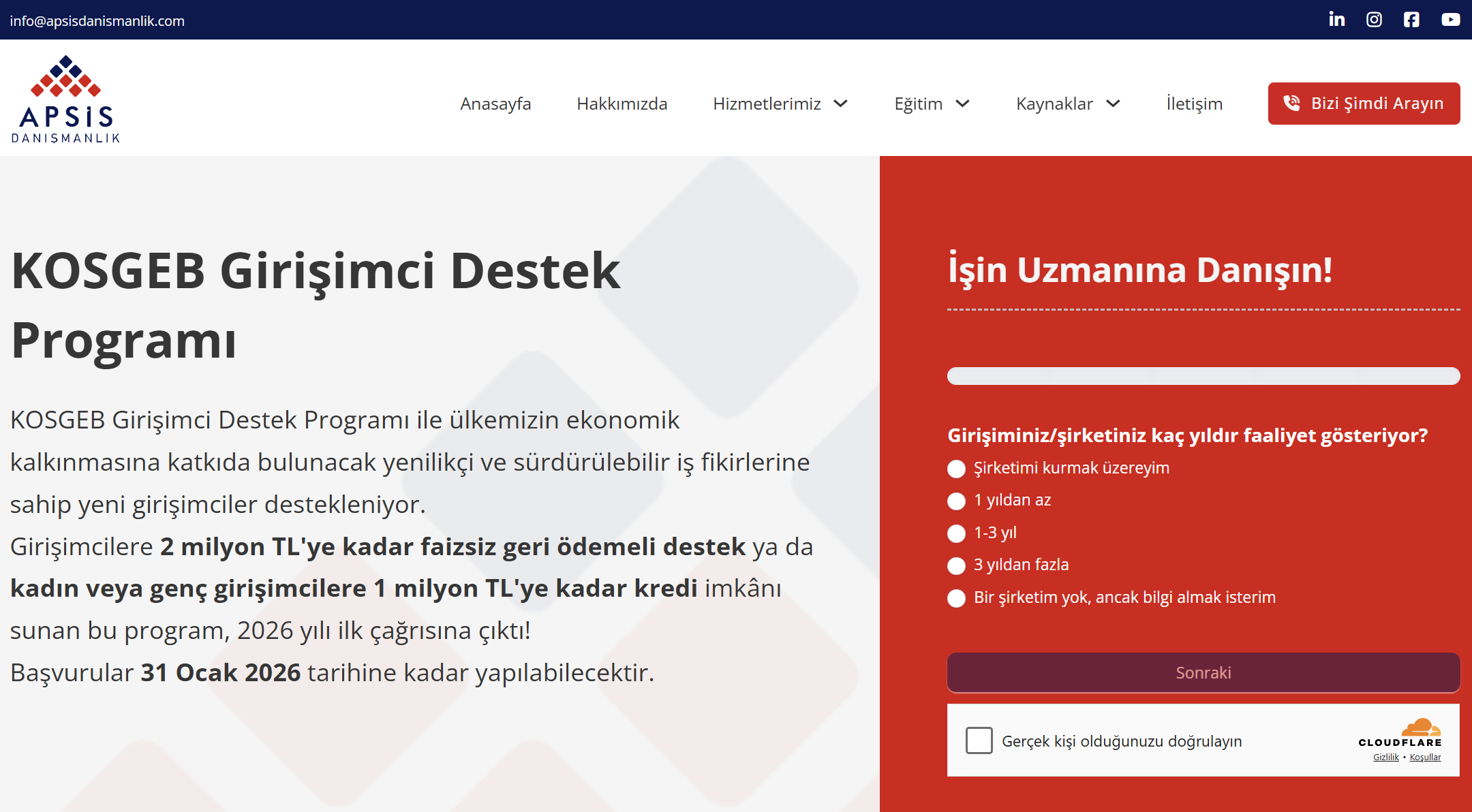 KOSGEB desteklerini bir şansa bırakmak yerine, doğru strateji ve doğru yönlendirme ile ilerlemek isteyen girişimciler için Apsis Danışmanlık, projenin her aşamasında güvenilir bir çözüm ortağıdır.