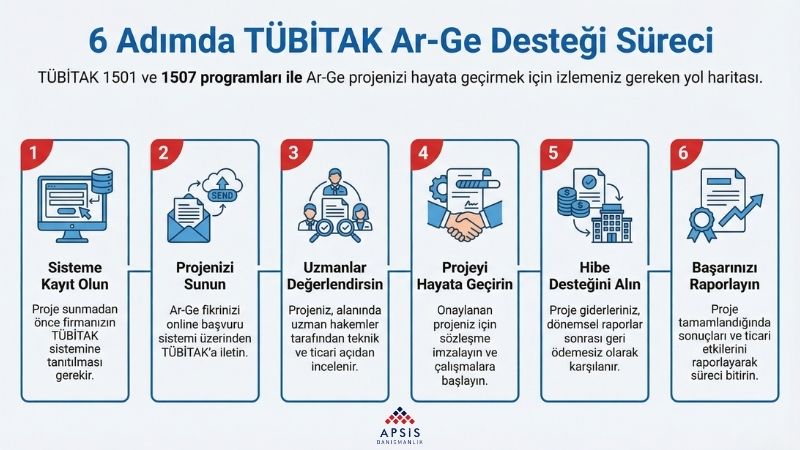 Özetle, Apsis Danışmanlık ile çalışmak, 1507 veya 1501 fark etmeksizin; TÜBİTAK’ın beklentilerini doğru okuyan, riskleri baştan yöneten ve Ar-Ge yatırımınızı kalıcı değere dönüştüren bir çözüm ortağıyla ilerlemek demektir.
